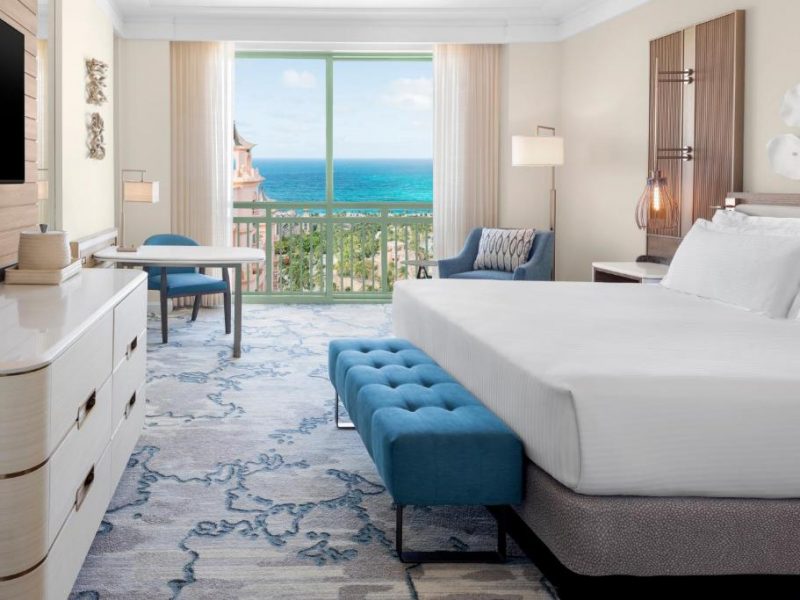 Explore The Royal at Atlantis Paradise Island, located right in the center of the excitement. The newly refurbished rooms shine with charm and energy, inspired by the hotel’s stunning setting surrounded by crystal-clear waters and pristine white sandy beaches. The iconic lobby welcomes you to discover The Dig and Ruins Lagoon, a captivating open-air marine habitat. Each modern room at The Royal includes a French balcony, offering breathtaking views of the harbor, ocean, or lush gardens. Enjoy 24-hour room service and Wi-Fi for your comfort and convenience anytime.